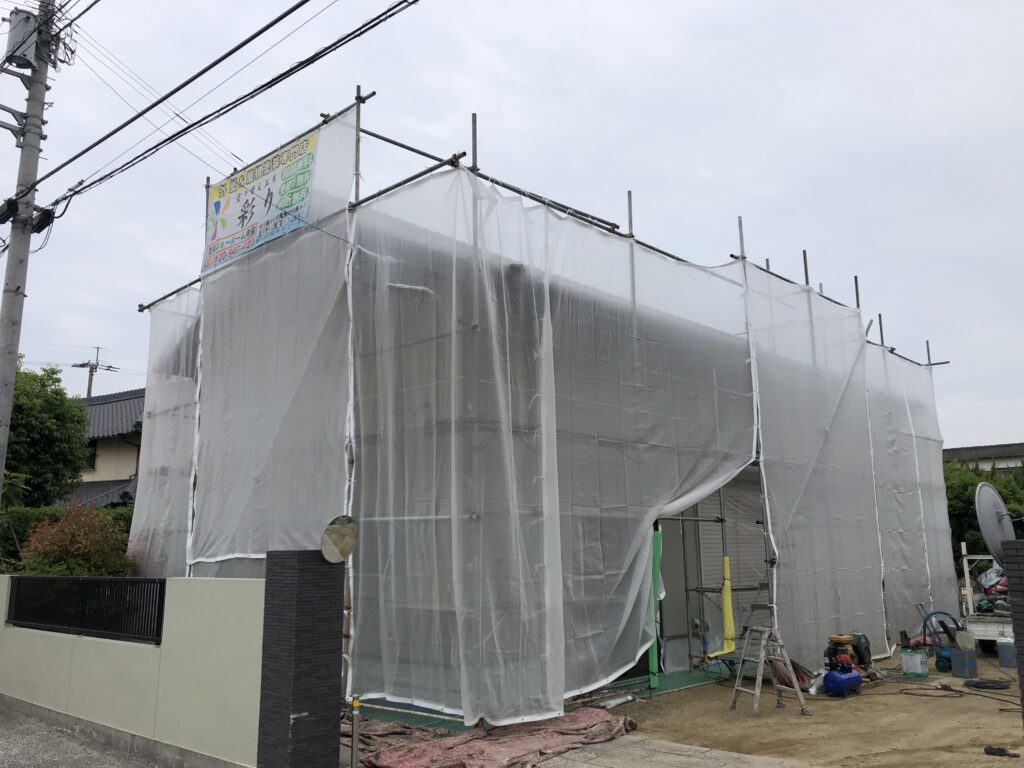 高松市内にて住宅屋根外壁塗装工事が着工しました!手塗りで元通り!