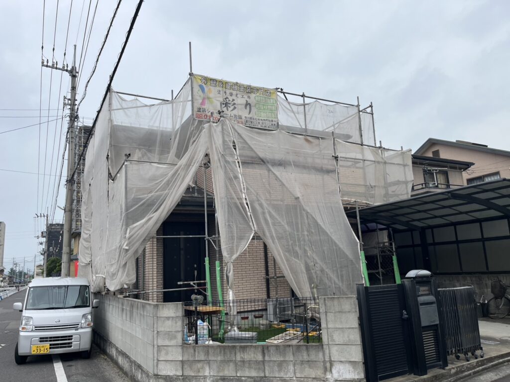 高松市内にて外壁塗装工事が着工しました。