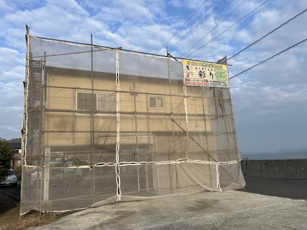 高松市内にて外壁塗装工事が着工しました。