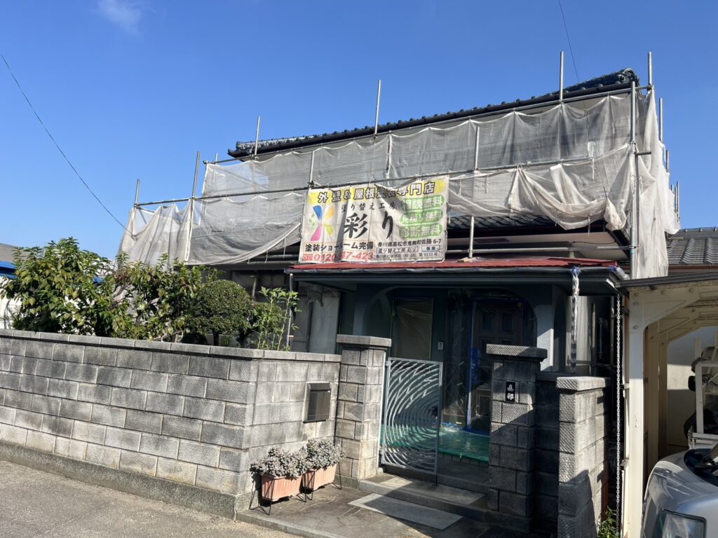 高松市内にて住宅塗装工事が着工しました!劣化した屋根外壁も手塗りで元通り!